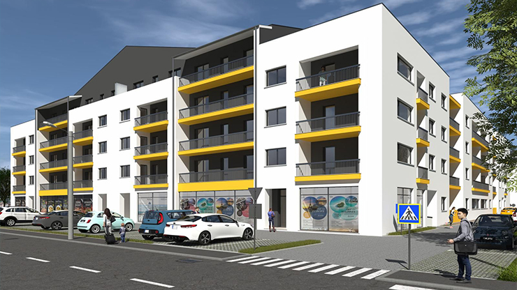 Parterul imobilului stradal dispune de spatii comerciale in care se vor amenaja un supermarket si un restaurante de tip trattoria unde poti face cumparaturi si servi masa.